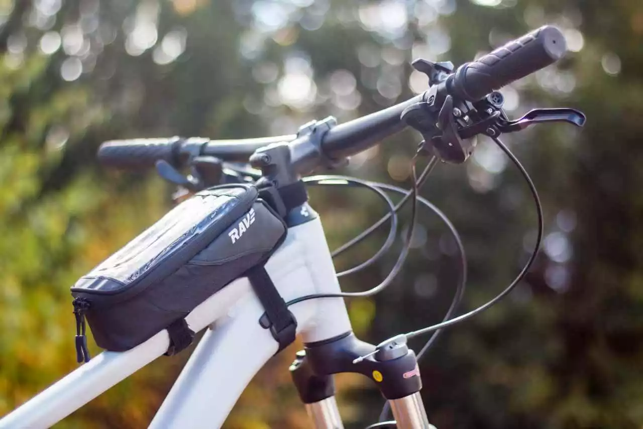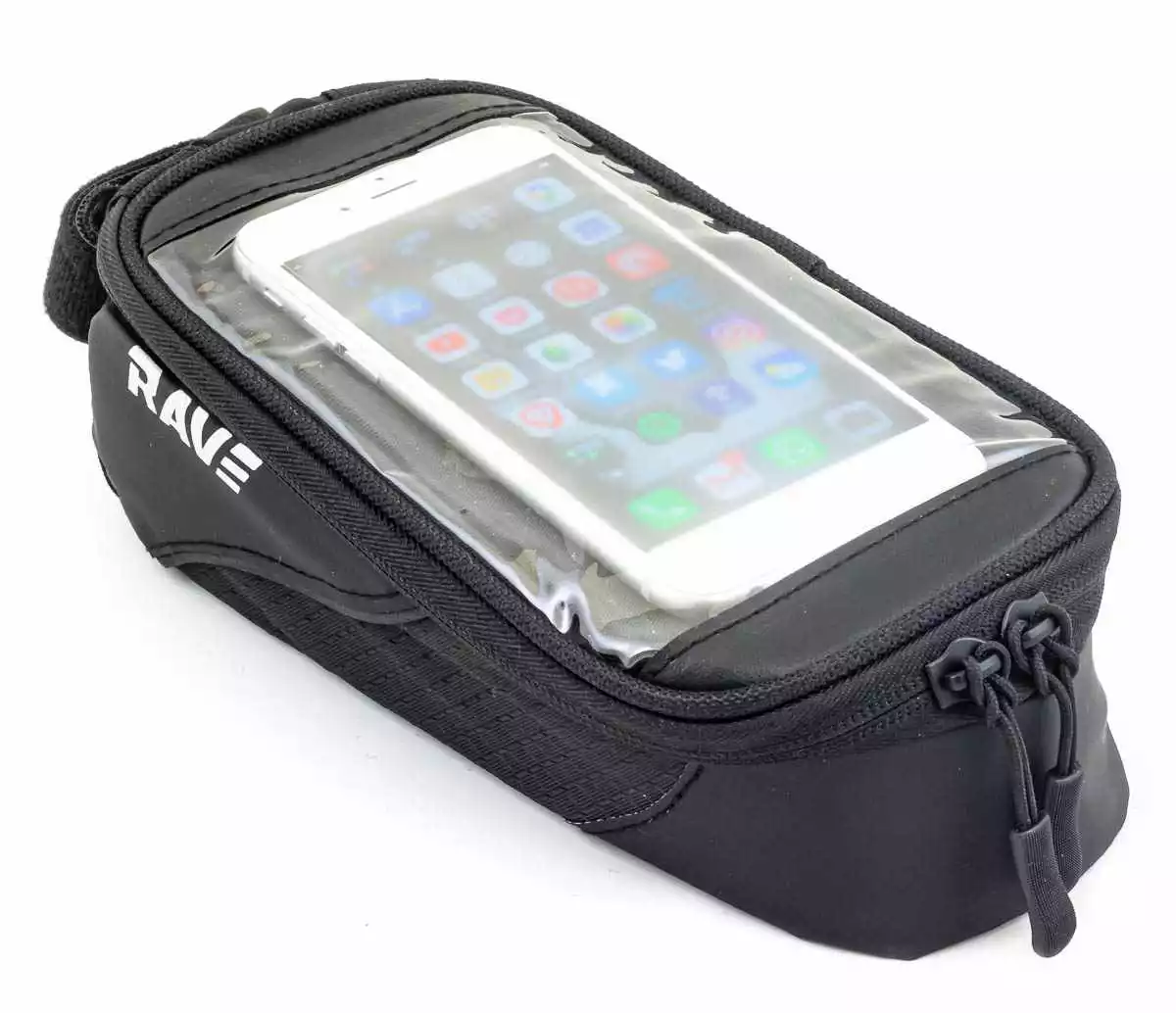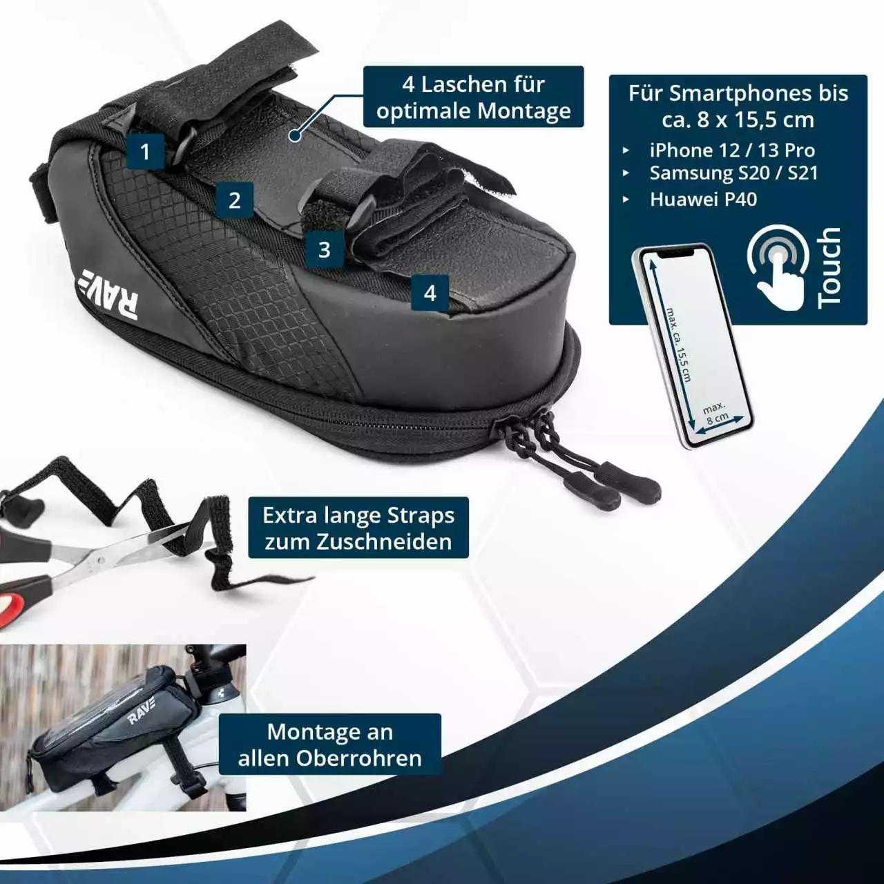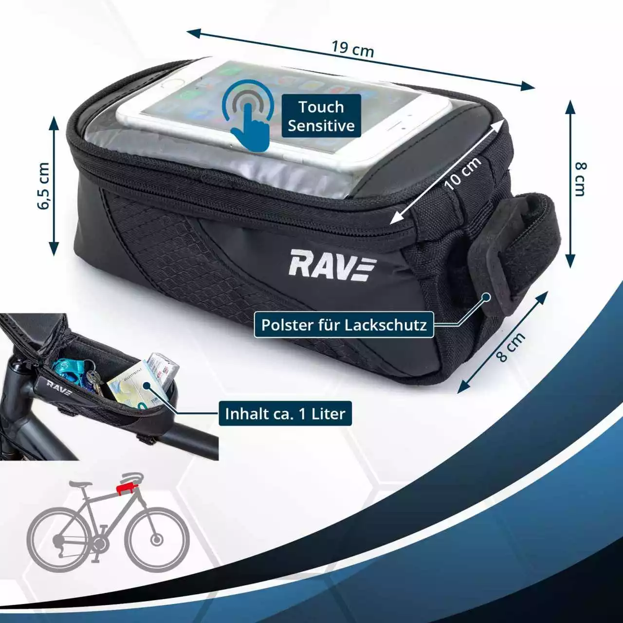 Mit der neuen Oberrohrtasche von RAVE bleibst du auf deiner Tour immer aktiv mit deinem Handy verbunden.