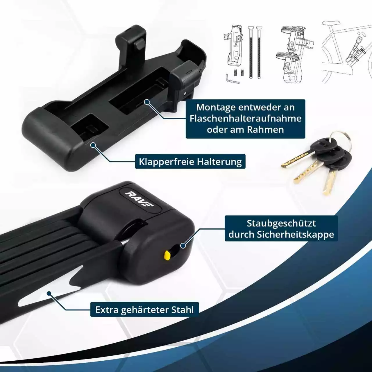 Das neue Faltschloss von RAVE bietet höchste Sicherheit und einen hohen Komfort. Der Name ist Programm.
