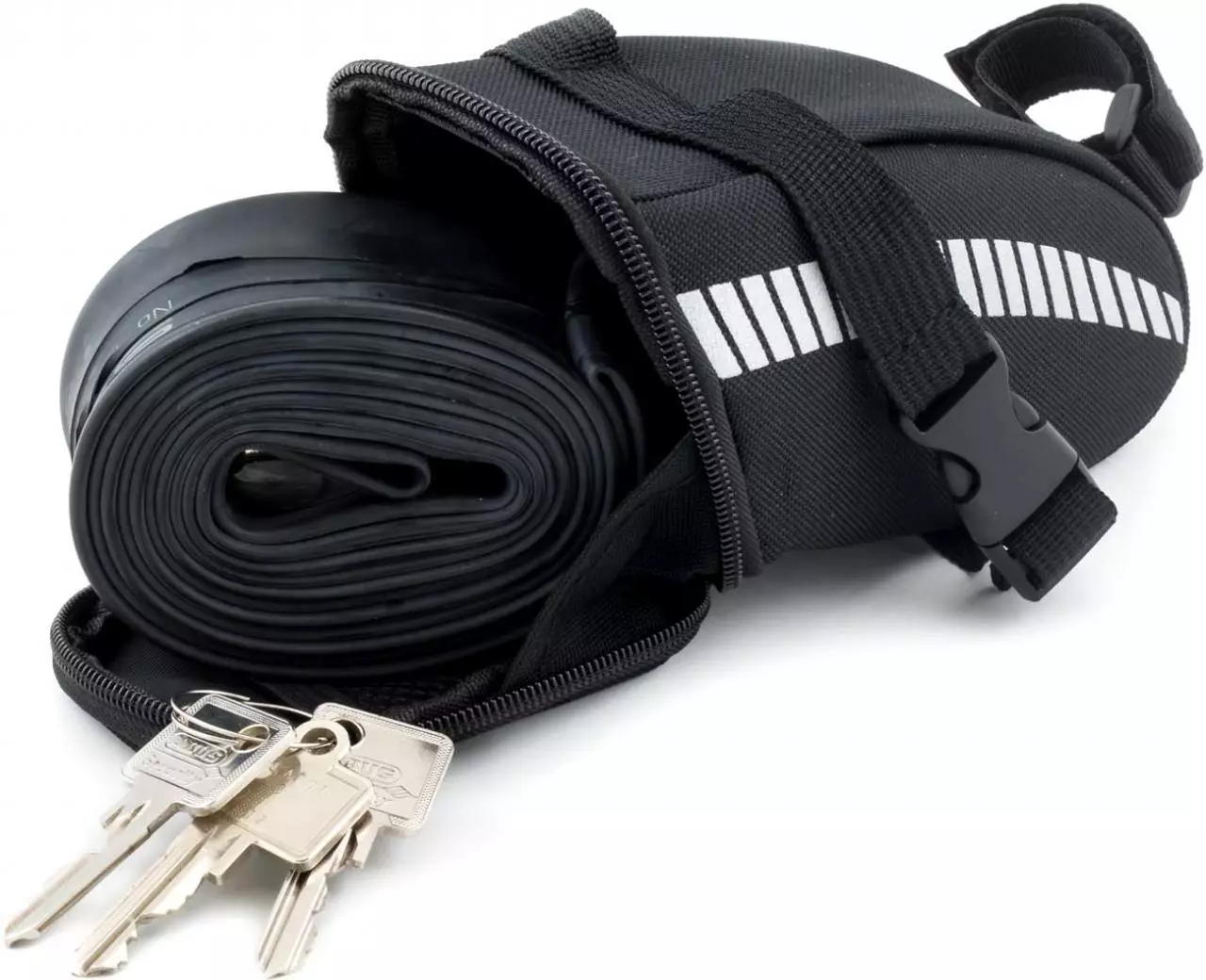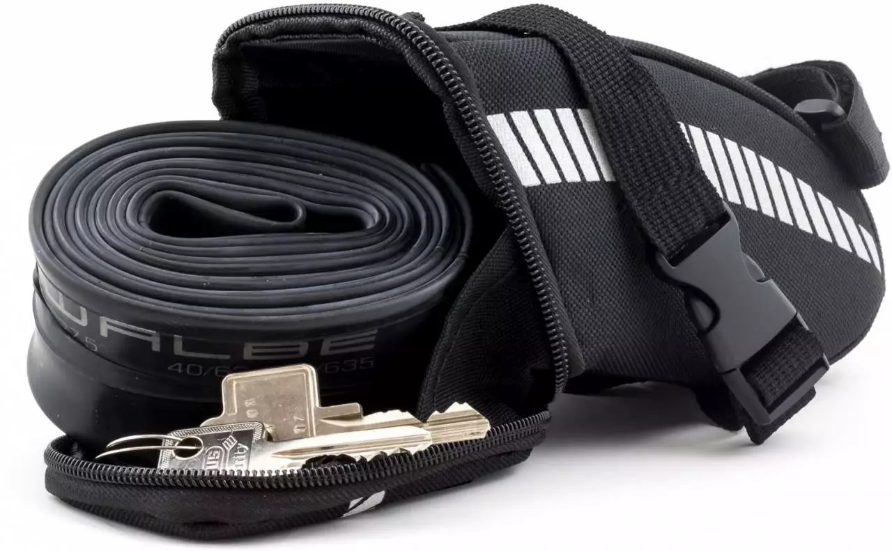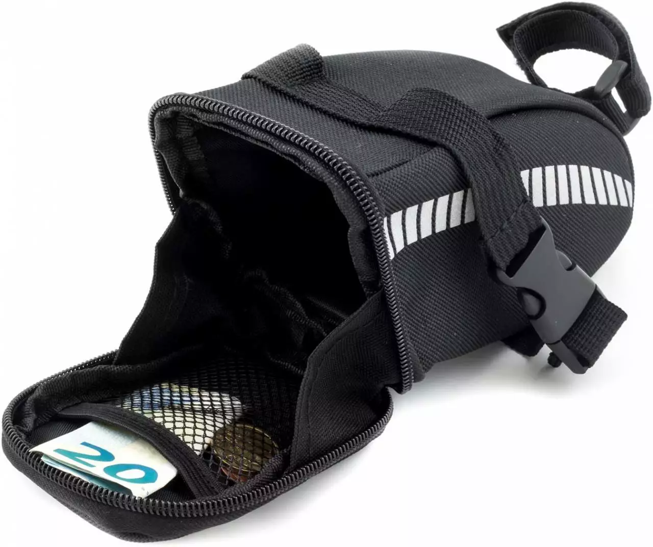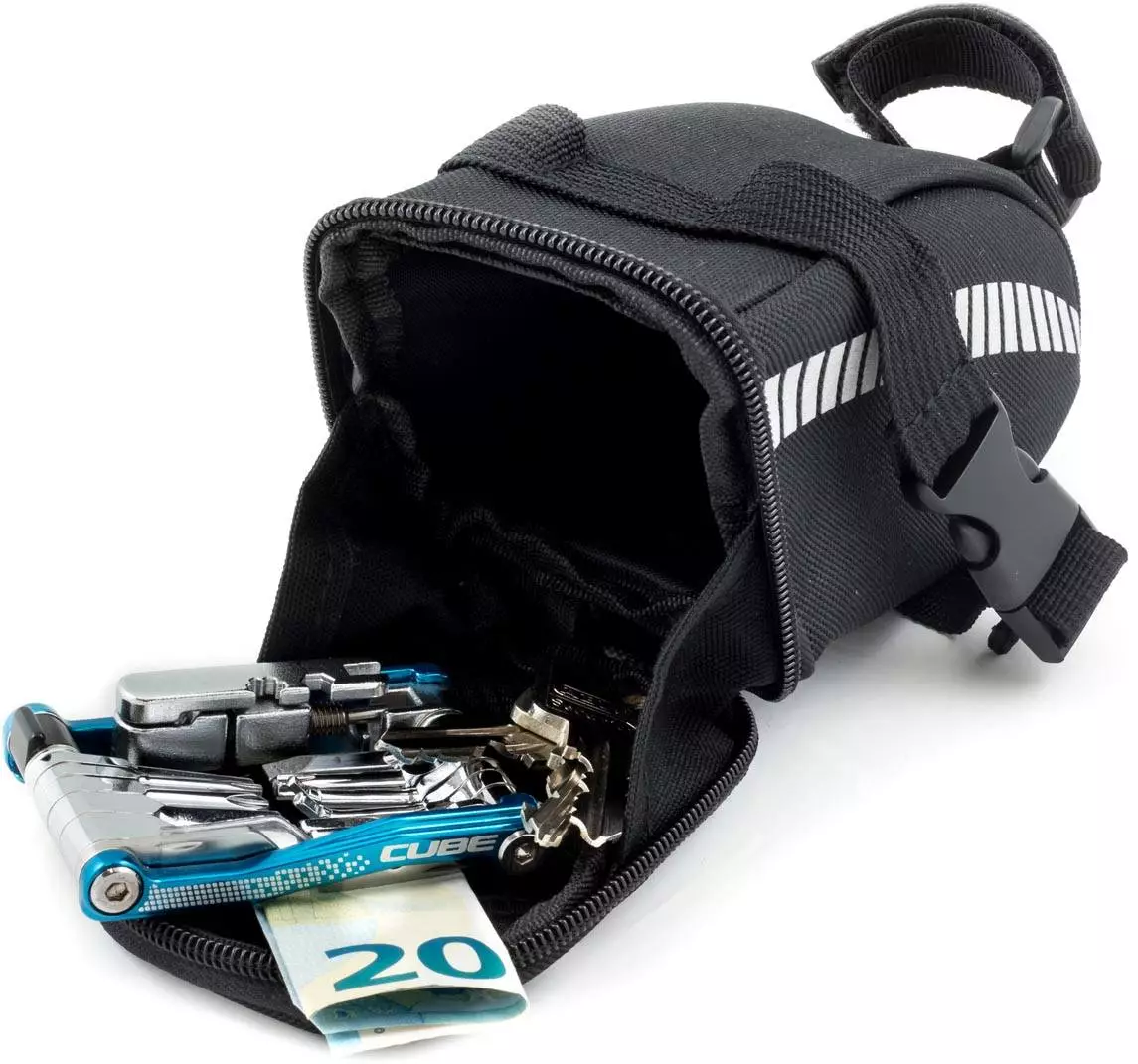 - Für Ersatzschlauch, Werkzeug, Handy, Geld, Verpflegung usw.