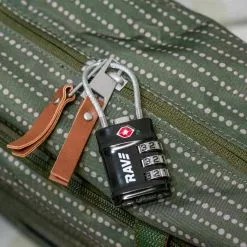 Das RAVE TSA Schloss sorgt für sicheres Abschließen von Koffern, Taschen und Rucksäcken. Das hochwertige Sicherheits-Zahlenschloss mit flexiblem Bügeldraht ist ideal geeignet für Flugreisen.