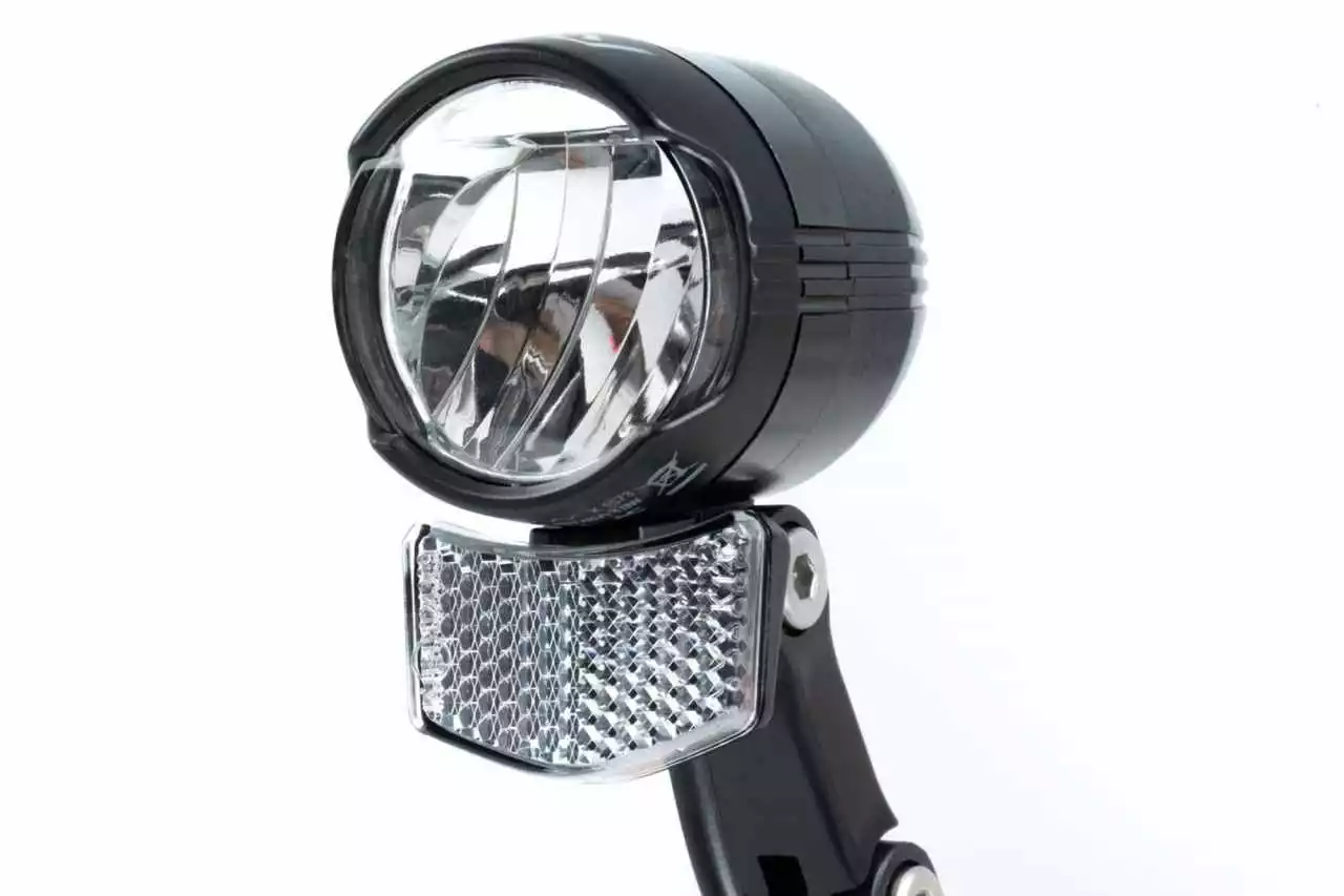 - LED Frontlicht: StVZO Zulassung, 80 Lux Leuchte mit Kunststoffhalterung, Osram LED, integrierter Reflektor, Einsatzbereich von 6 – 48 V, inkl. 130 cm Lichtkabel mit Stecker für BOSCH Systeme