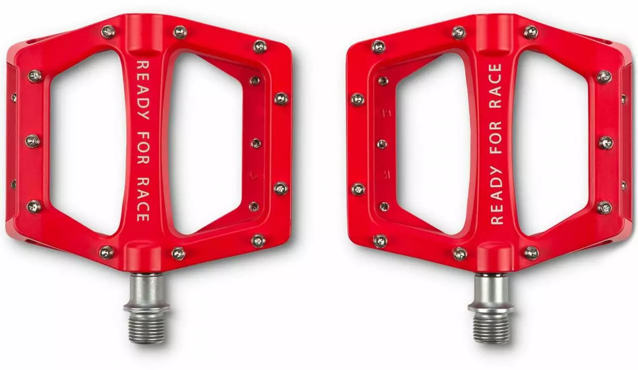 Die leichten Flat-Pedale sind aus Aluminium hergestellt und werden mit einer Cr-Mo-Achse verbaut. Die Anti-Rutsch-Pins sind austauschbar und bieten besten Halt am Fahrrad.