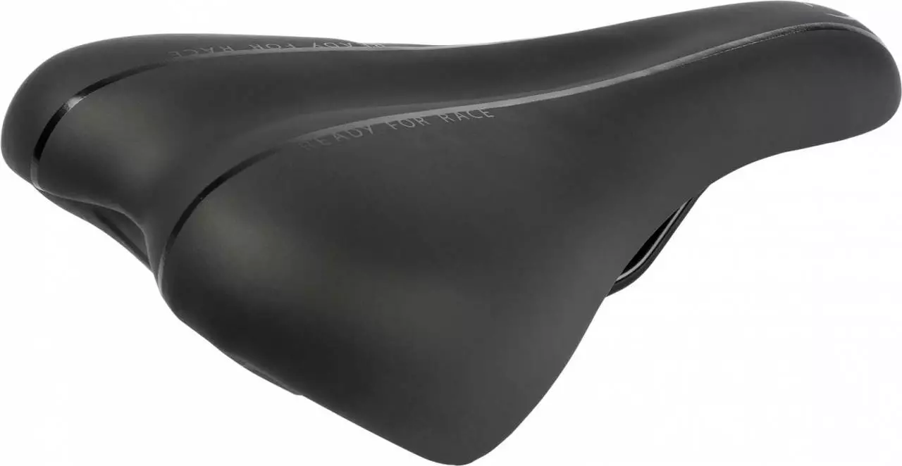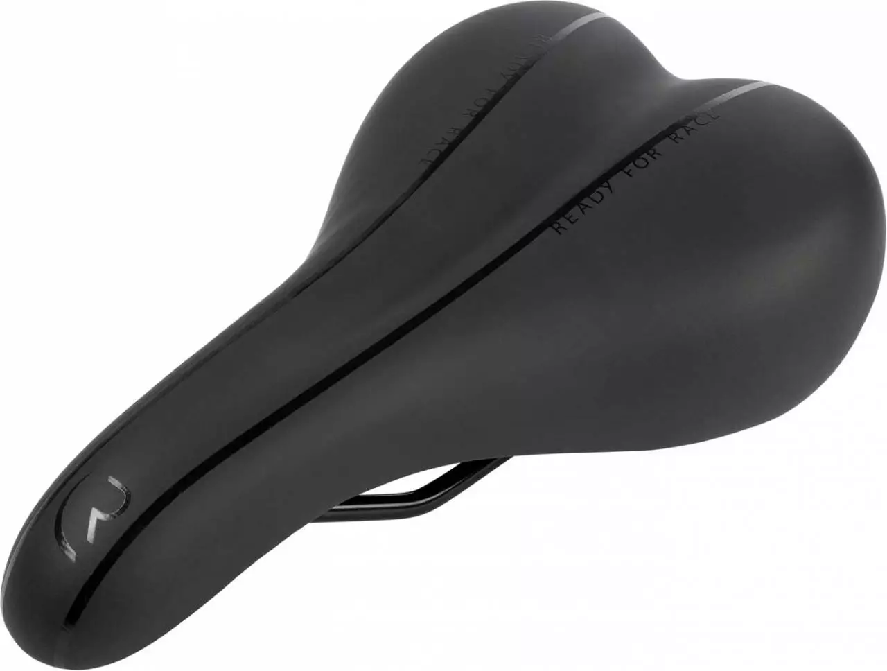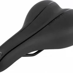 Einfacher Trekkingsattel mit Gelfenster zur optimalen Entlastung empfindlicher Zonen auf langen Touren. Bequemer Sitz durch die Kombination aus Gel und Dual-Density-Technologie.