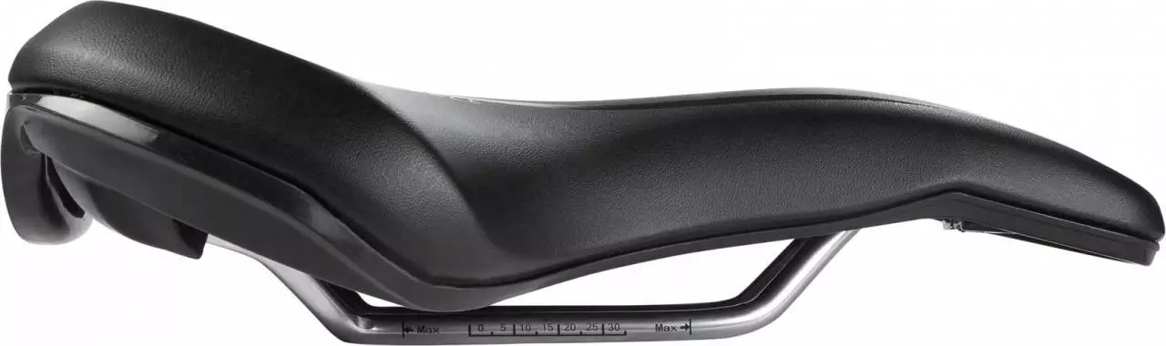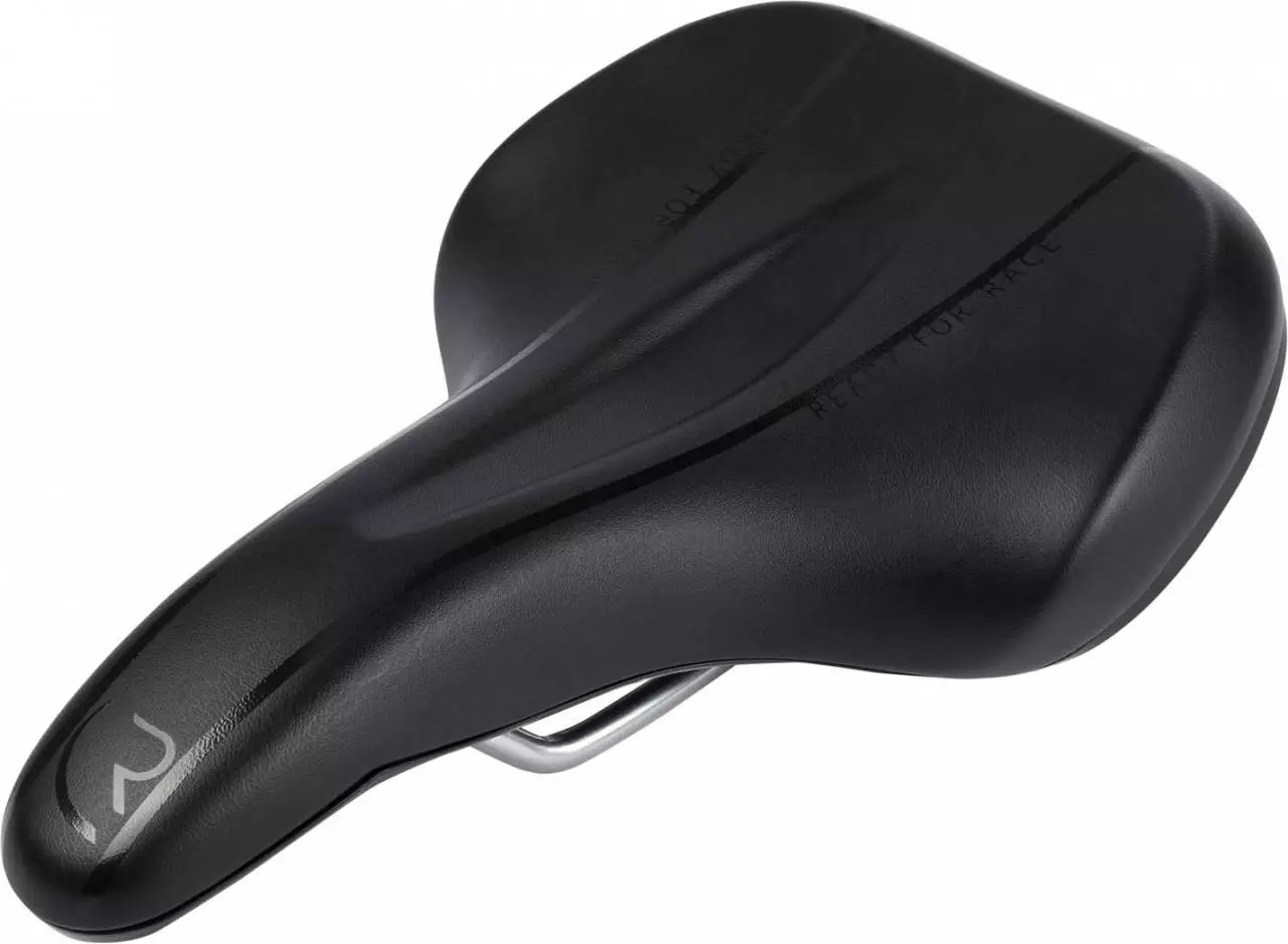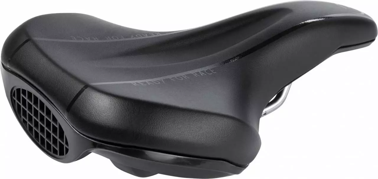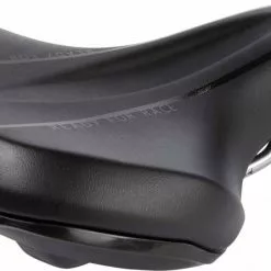 Breiter TREKKING-Sattel für hohen Komfort. Durch die neue Verarbeitungstechnologie steht einem bequemen Fahren nichts entgegen. Die anatomische Form passt sich der Beckenform an. Der Haltegriff unter dem Sattel vereinfacht das Tragen und ist besonders gut für den E-Bike-/Trekking-Bereich geeignet.