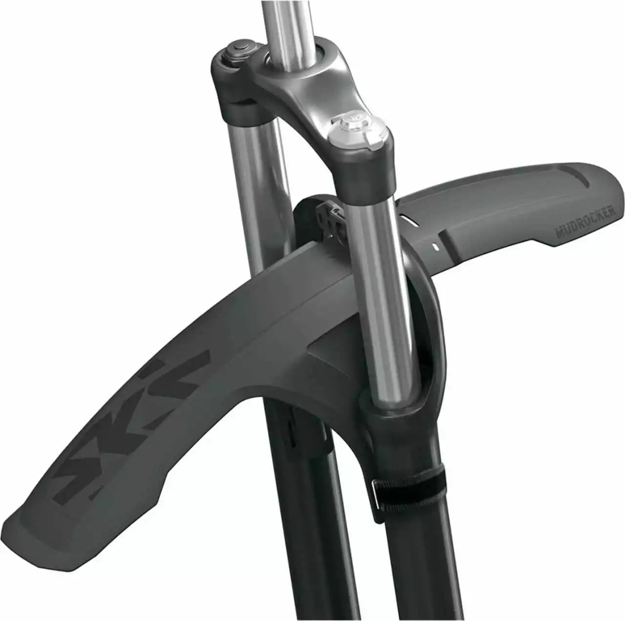 Mit dem SKS Schutzblech MUDROCKER FRONT aus schlagfestem Hochleistungskunststoff bleibt der Fokus auf dem Trail. Und der Matsch aus dem Gesicht. Der Radschutz mit gummierten, lackschonenden Klettstraps oder Kabelbindern lässt sich schnell an der Gabelbrücke montieren und genauso schnell wieder abnehmen. Auch kann der MUDROCKER mit einem speziellen Adapter fest montiert werden, wenn auf der Gabelbrücke Gewinde vorhanden sind.