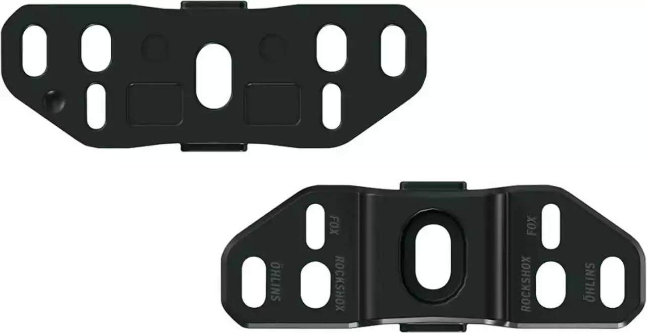 Kompatibel ist der Adapter ebenfalls mit Federgabeln mit zwei seitlichen Gewindebuchsen der Marken Fox, Rockshox ab BJ 2021 und Öhlins. Zudem garantiert die seitliche Befestigung an den Tauchrohren mit Klettstraps bzw. Kabelbindern eine hohe Stabilität. Die Tube-Protection an beiden Seiten sorgt außerdem dafür, dass weniger Dreck an die Standrohre gelangt. Je nach Geometrie der Federgabel kann diese mit der Schere angepasst werden. Ein Adapter und Klettstraps sind im Lieferumfang enthalten.