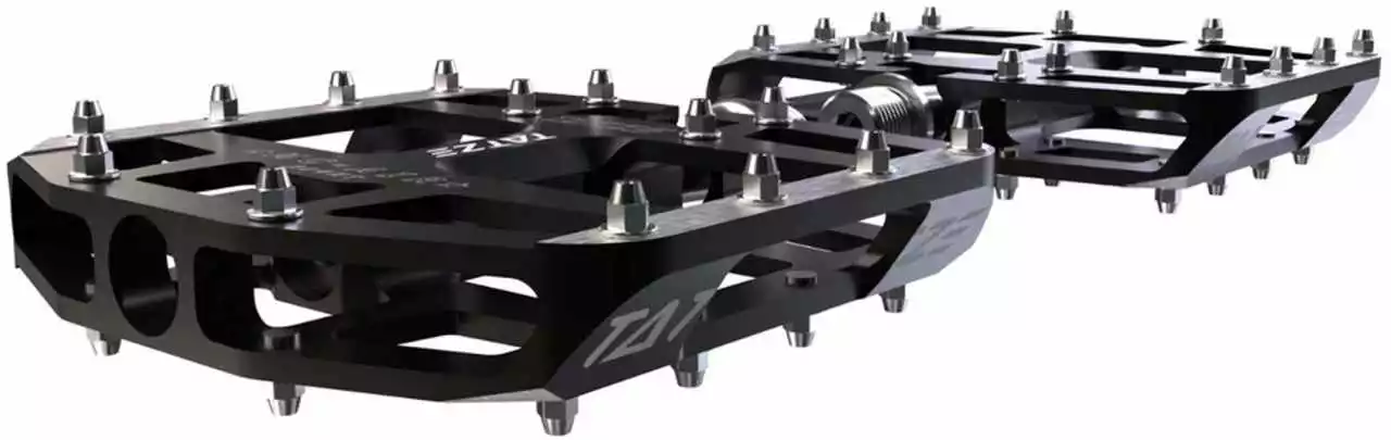 Die große Plattform mit 107x98x16mm (LxBxH) kombiniert einen sichern Stand bei gleichzeitig hervorragender Seiten- und Bodenfreiheit. Die Abgeschrägte Front mit Stealth Prallecken lässt das Pedal über Hindernisse gleiten und verhindert, dass sich Erde im Pedal sammelt.