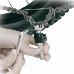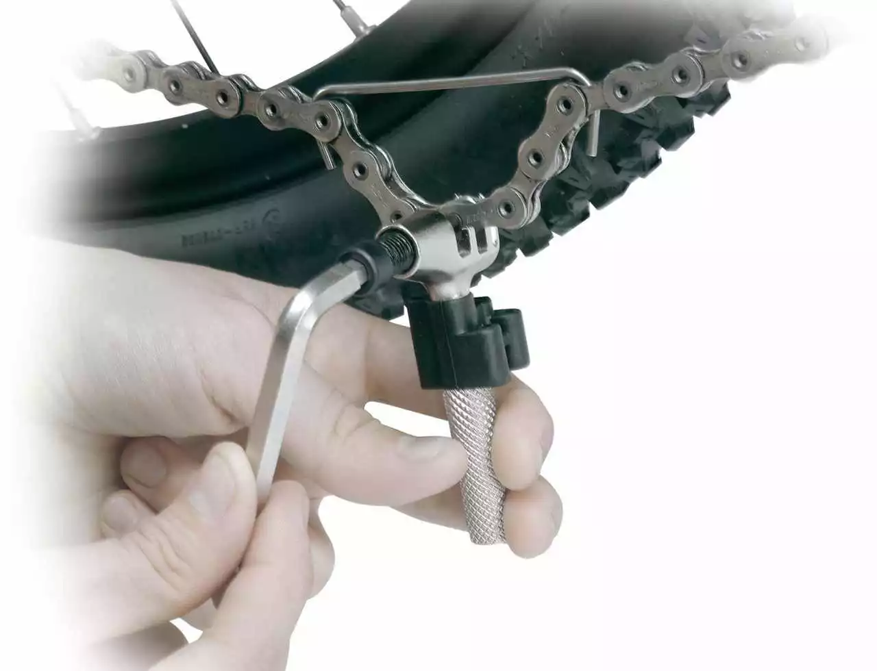 Hochqualitativer Kettennieter für Single- und Multi-Speed Ketten bis 12-fach. NICHT kompatibel mit Campagnolo® 11-fach Hollow Pin Ketten. Inklusive 5 mm und 6 mm Inbus®-Schlüssel sowie Kettenfixierhaken.