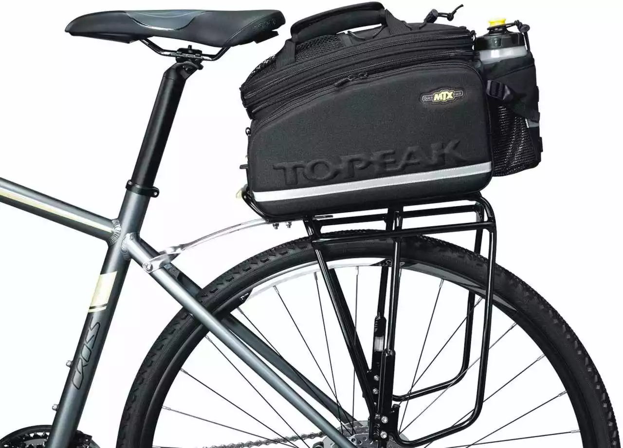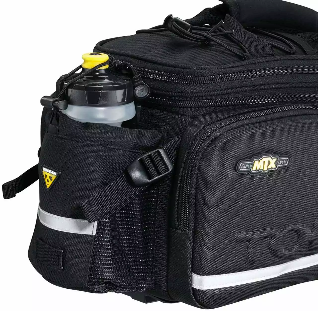 Die MTX TrunkBag DX Tasche bietet ein geteiltes Hauptfach, zwei Reißverschlussseitentaschen und eine zusätzliche Flaschenhalterung. Der einzigartige Herstellungsprozess kombiniert steife Grundplatten mit flexiblen Materialien für idealen Schutz und Robustheit. Kompatibel mit allen MTX QuickTrack™ Gepäckträgern.