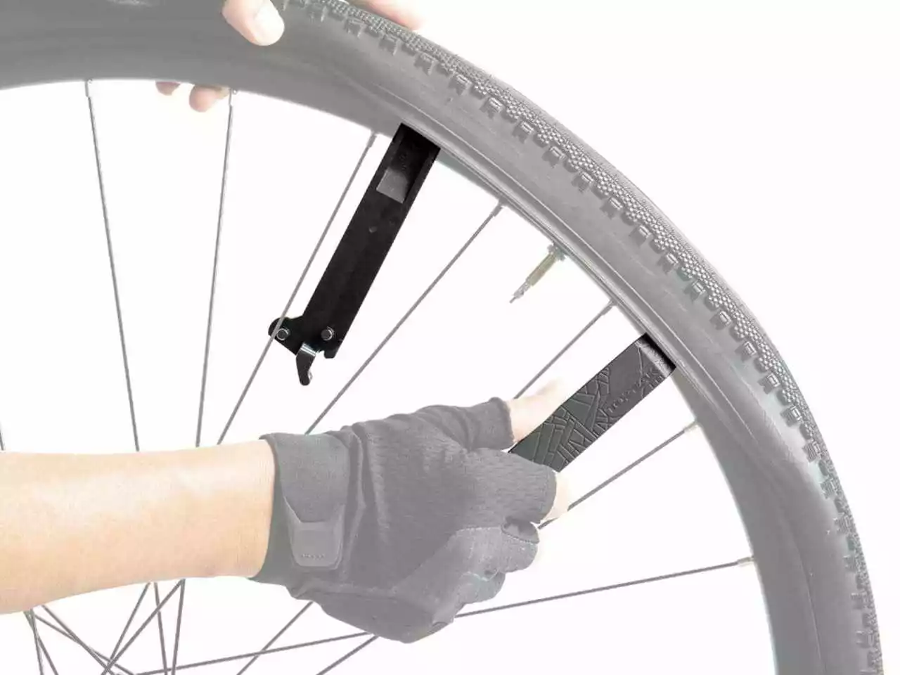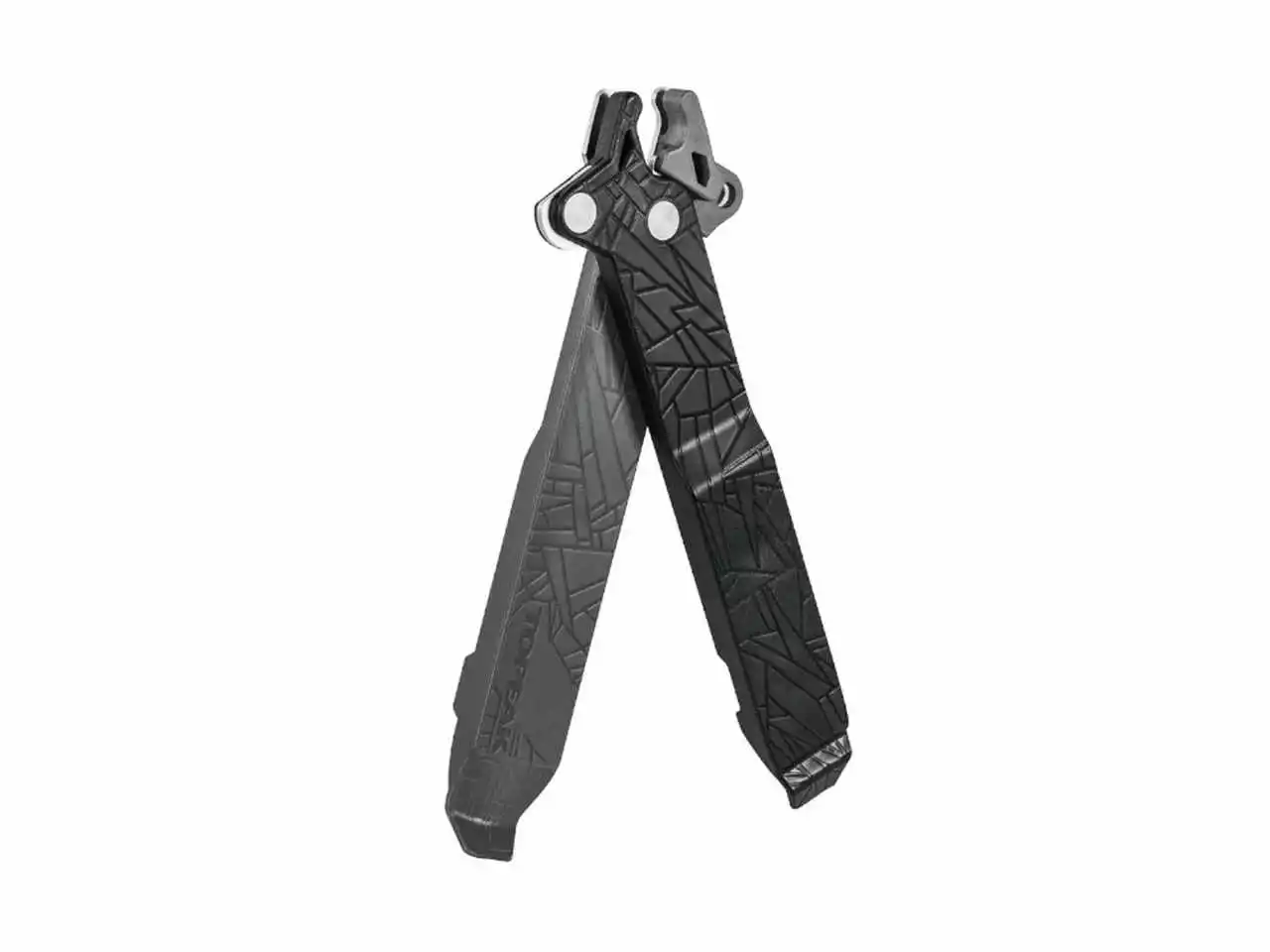 Die zwei Reifenheber lassen sich zu einer Hochleistungszange zum Öffnen oder Schließen aller gängigen Kettenschlösser verbinden. Ein integrierter Kettenfixierhaken hält die Kette beim Entfernen oder Einsetzen von Kettenschlössern für bequemes Arbeiten zusammen. Passend dazu lässt sich ein Ersatz-Kettenschloss in einem integrierten Fach transportieren. Im Handumdrehen kann die Zange getrennt, in zwei Reifenheber verwandelt und für schnelle Reifenreparaturen verwendet werden. Als Sahnehäubchen ist noch ein Presta-Ventilwerkzeug zum Entfernen von Presta-Ventileinsätzen integriert.