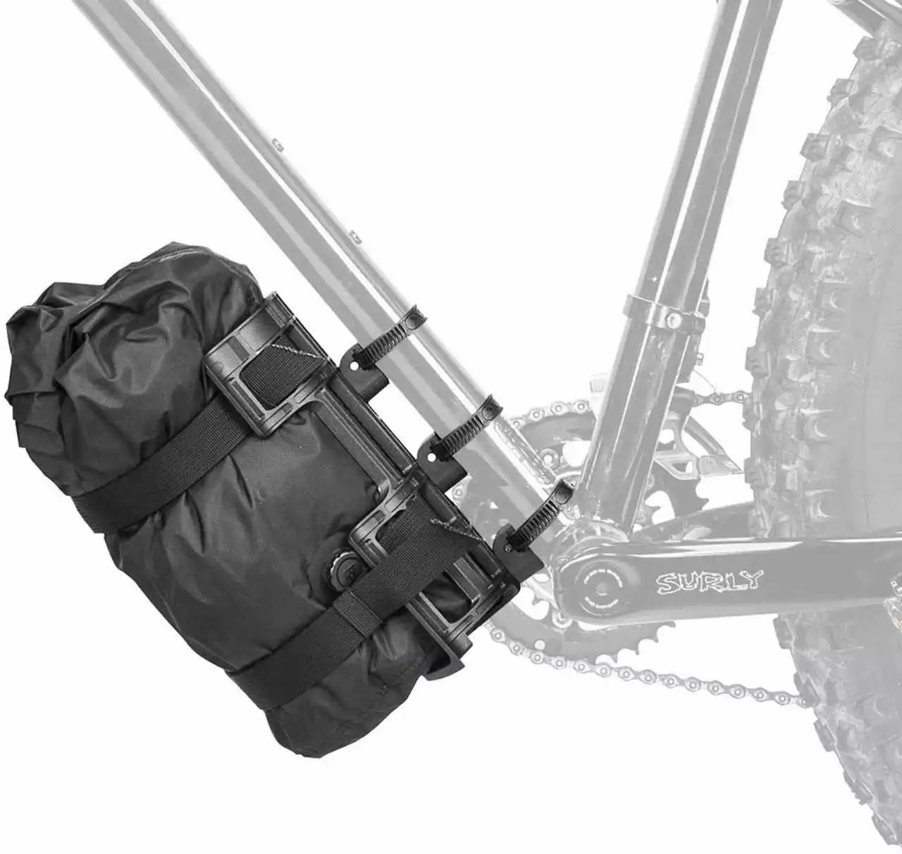 Weite deine Abenteuer aus mit dem VersaCage, indem du mehr Gepäck an deinem Bike befestigst. Denn mit den enthaltenen VersaMount Schellen und Packriemen lässt sich zylindrisches Gepäck, wie z.B. Pack- oder Schlafsäcke, an vielen Stellen des Rahmens oder der Gabel befestigen. Für eine stets optimale Positionierung und Gewichtsverteilung des Gepäcks ist der VersaCage mit vier Montageösen ausgestattet. Die VersaMount-Schellen sind mit Ø 20 – 60 mm Rahmenrohren kompatibel.