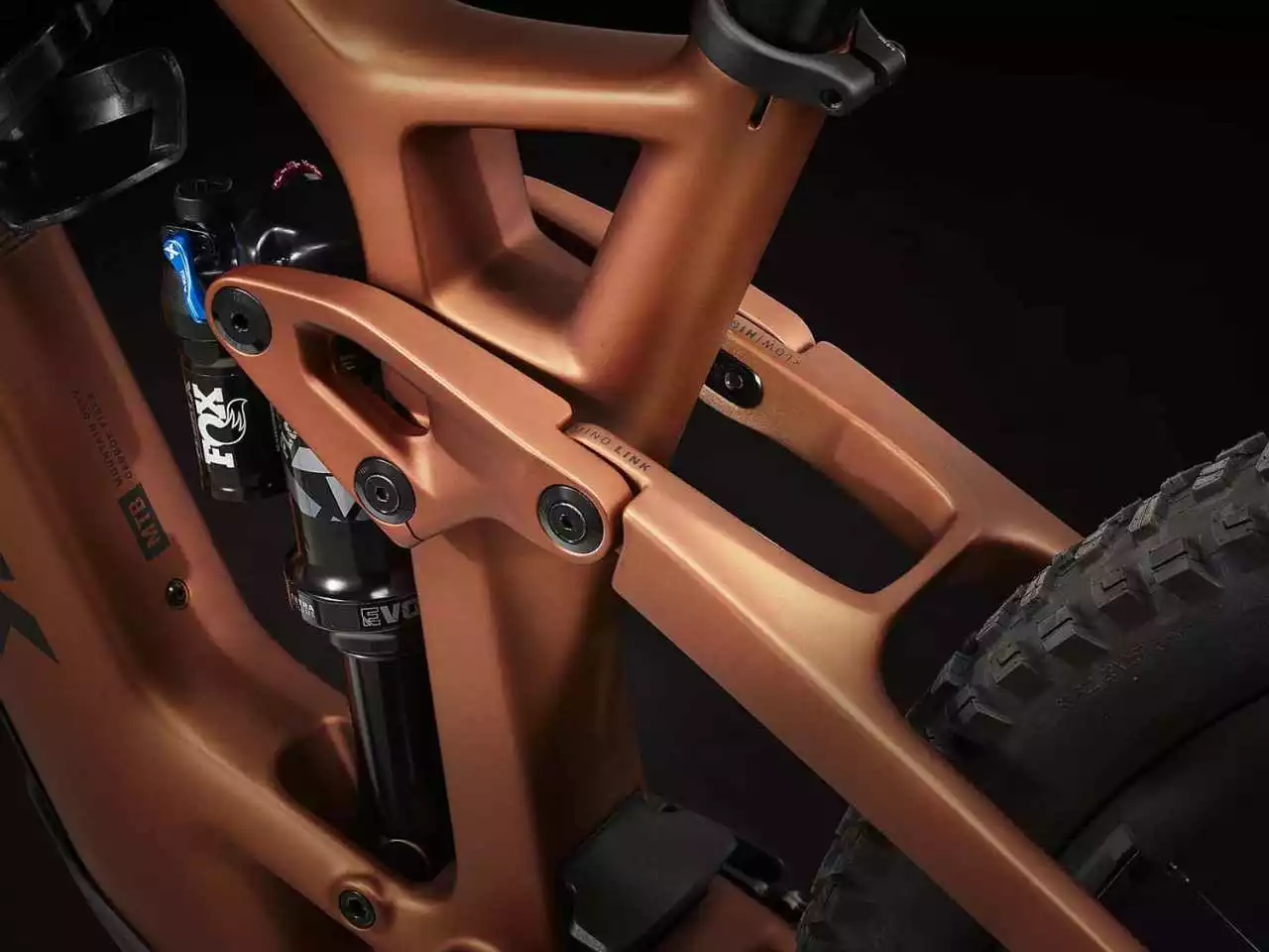 | Rahmen | OCLV Mountain Carbon, herausnehmbarer Akku, interne Zugführung, Umlenkhebel aus Aluminium, Sitzrohrdurchmesser 34,9 mm, Aufnahme für obere Kettenführung, 55 mm Kettenlinie, Mino Link, ABP, Boost148, UDH, 140 mm Federweg |