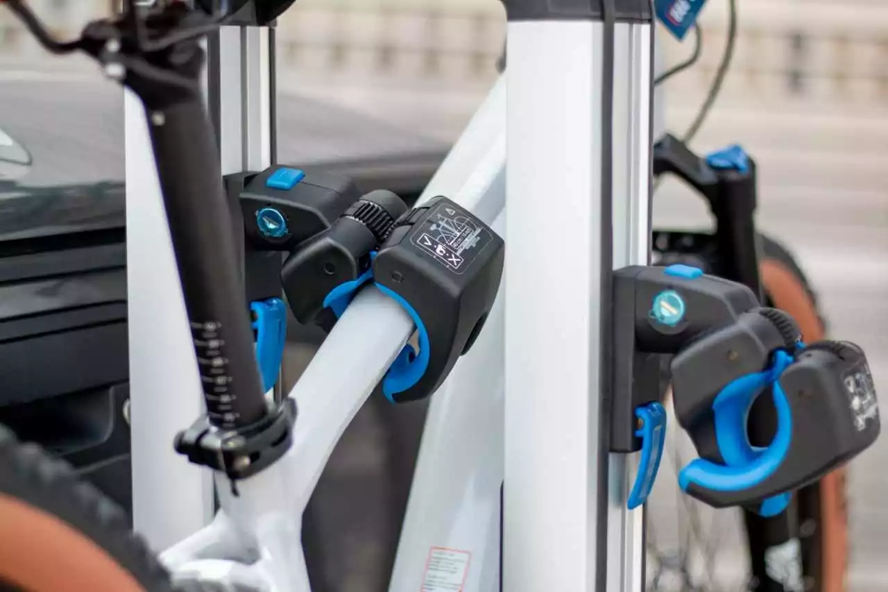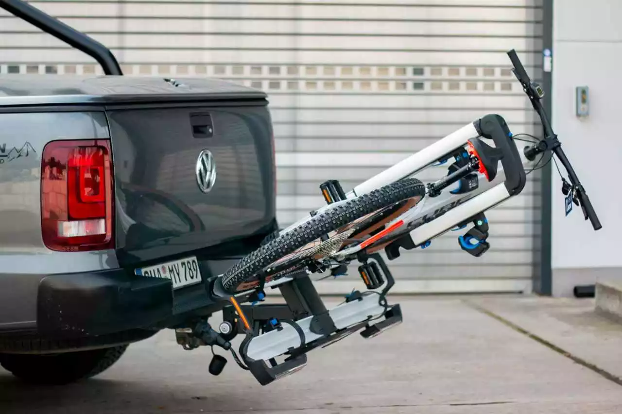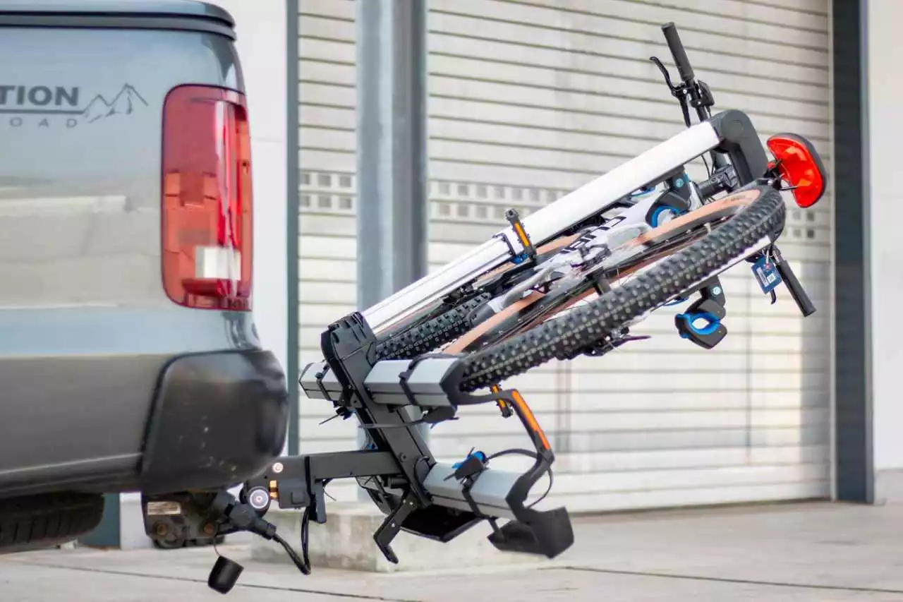 Der XLC Heckträgers Almada Work-E VC-C07 ist ein innovativer, faltbarer Fahrradträger, der durch seinen einzigartigen und robusten Look und die LED-Beleuchtung auffällt. Die breiten Radschienen sind selbst für die größten (E-)MTBs ausgelegt, sodass zwei Fahrräder unterschiedlicher Größe problemlos transportiert werden können. Der Almada Work-E bietet die Möglichkeit, den Träger als Montageständer für Wartungen und Reparaturen am Fahrrad zu verwenden. Die neuen Fahrradgreifer eignen sich für alle Rahmenmaterialien, auch für vollgefederte Carbonrahmen. Dank des Modular Rail System (MRS) kann diverses Zubehör, wie ein zusätzliches XLC MRS Rail Lock, am Heckträger installiert und so die Sicherheit erhöht werden. Außerdem ist sowohl eine Auffahrschiene, als auch ein Rahmenadapter separat erhältlich: So können auch Tiefeinsteiger-Räder von den innovativen Features des Almada Work-E profitieren. Besonders hervorzuheben ist die benutzerfreundliche und schnelle Installation. Der Heckträger ist auf Gepäckgröße faltbar und ist auch mit montierten Rädern abklappbar, sodass der Kofferraum jederzeit mühelos erreicht werden kann. Der XLC Almada Work-E VC-C07 ist ein stabiler und zuverlässiger Fahrradträger mit zusätzlichen Sicherheitsfunktionen, damit das geliebte Fahrrad unbesorgt überall mit hingenommen werden kann.